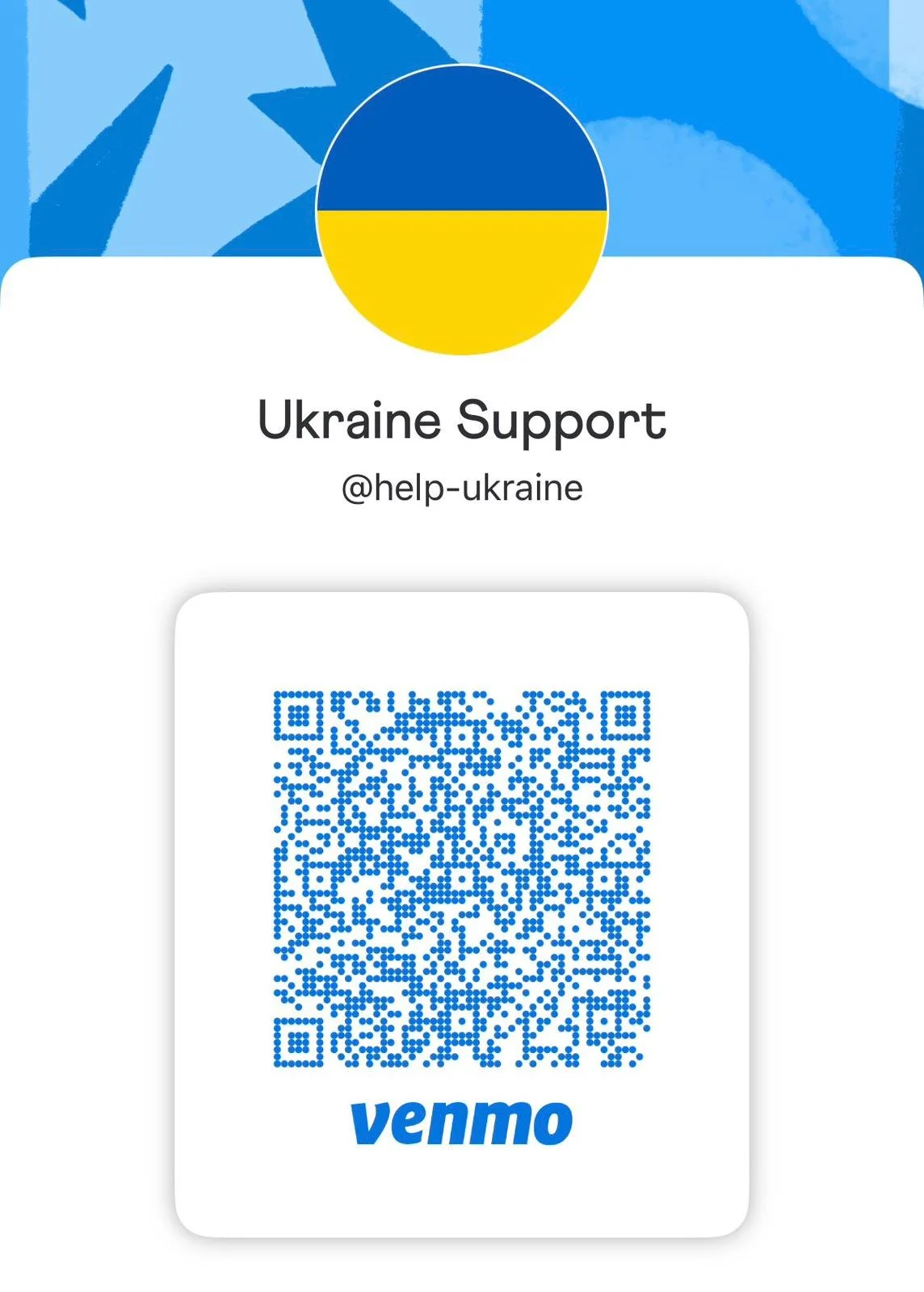 Your dollars help us get supplies to our partners in Ukraine that help the Armed Forces defend their country. If you would like to make a difference you can Venmo @help-ukraine , scan this QR Code: